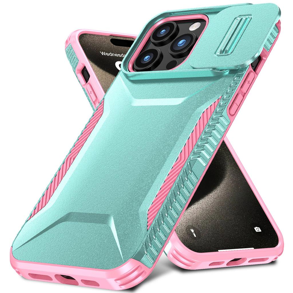 Für iPhone 15 Pro Hülle Rutschfeste PC+TPU Handyhülle mit Schiebekameraabdeckung
