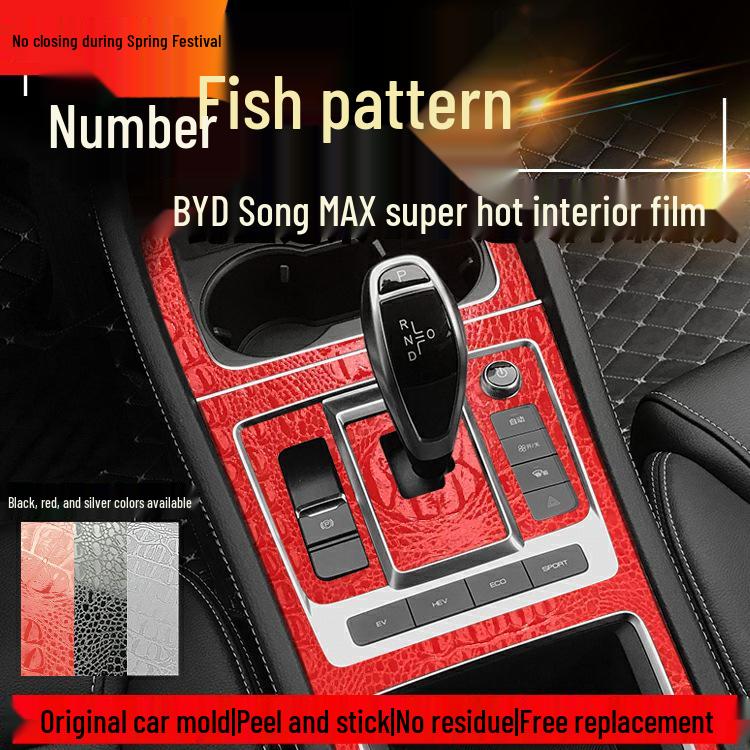 Krokodilmusterfolie für BYD Song MAX Innenraumkonsole & Paneeldekoration, Wildschwarzer Aufkleber