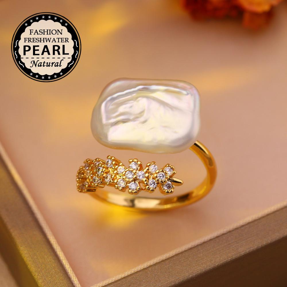 SENIKO 12-16mm Natürliche Süßwasser Perle Ringe Für Frauen Mode Weibliche Zirkonia CZ Ring Perle Schmuck Einstellbare ring