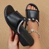 Keilabsatz-Slipper Damen Sommer neu große Größe bequem Fischmaul Lazy Foot Set Strass kalte Slipper