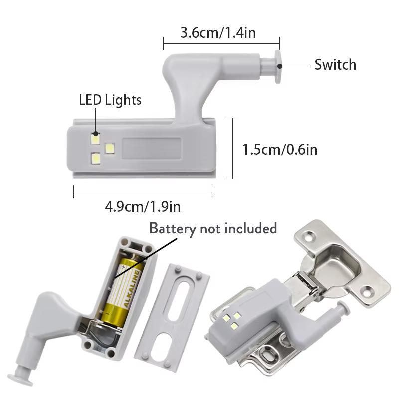 10X Led Inner Hinge Lamp 3000k 6000k Bedroom Kitchen Closet Battery Operated Wardrobe Cupboard Light Night Lights Lamps Cabinet