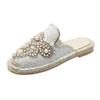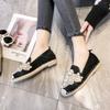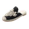 Frühling neue flache lässige runde Zehenpartie Weidenboden Stroh geflochtene Fischer Schuhe Damenschuhe vielseitige Perlen Dameneinzel Schuhe