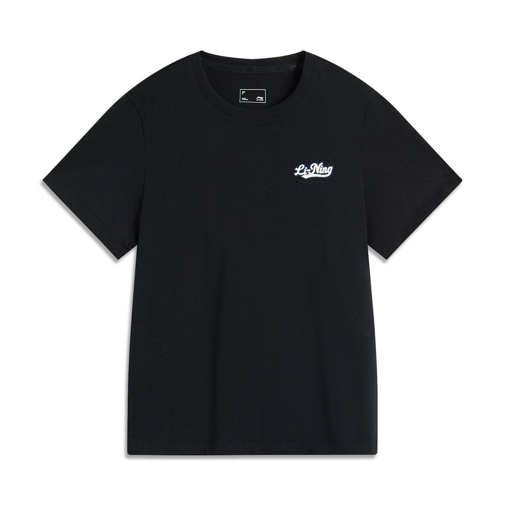 Li-Ning Round Neck Letter Casual Knitted Sports Short Sleeve T-Shirt Women Tops Black AHSU530-3