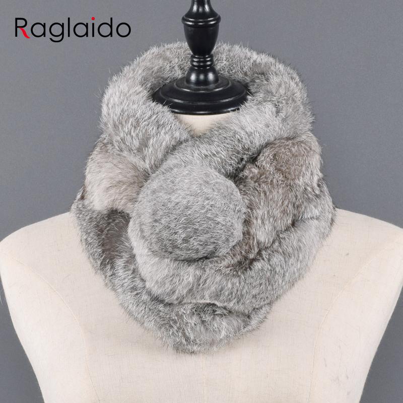 Natural Rabbit Fur Scarf for Women New Arrival Real 100% Rex Rabbit Fur Scarves Winter Fur Neckerchief Rabbit Fur Pompom