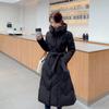 Neue Damenmode Taillen-Baumwolljacke Verlängert Winter Locker Gepolsterter Überknie-Mantel.