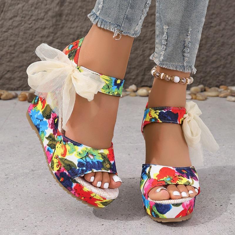 Sommer neue Fischmaul Schnür-High-Heel Damen Sandalen große Größe Farbe Ein-Wort Muffin Dicksohl Keilsandalen