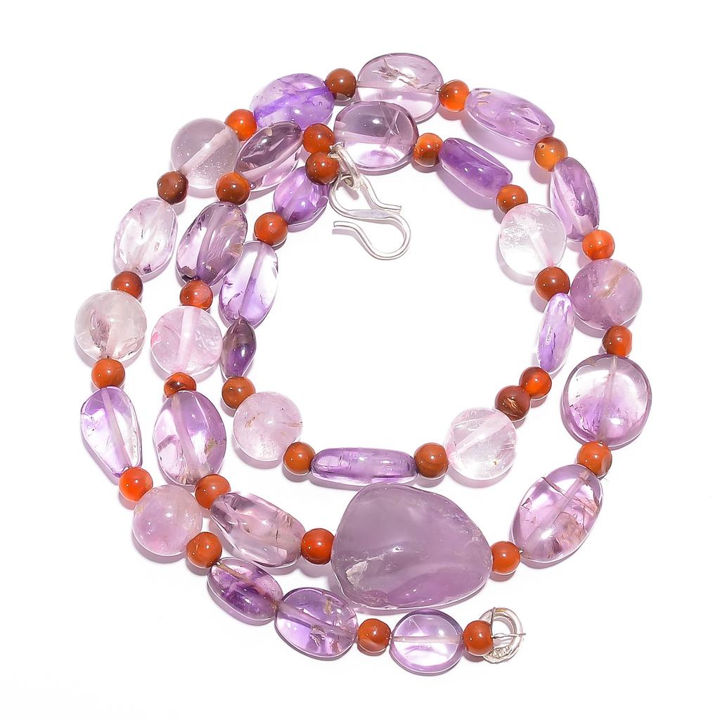 Natur Amethyst Karneol Edelstein Glatte Perlen Halskette 4-19 mm 18" UB-7834 UB-7834