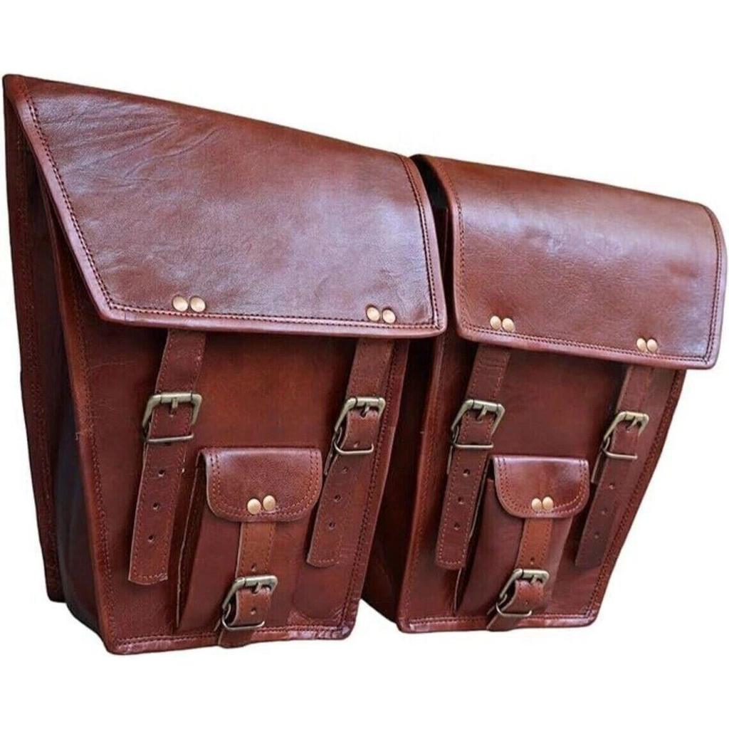 Motorrad-Satteltaschen Zwei Braune Leder-Seitentaschen Gepäcktaschen Echtes Ziegenleder