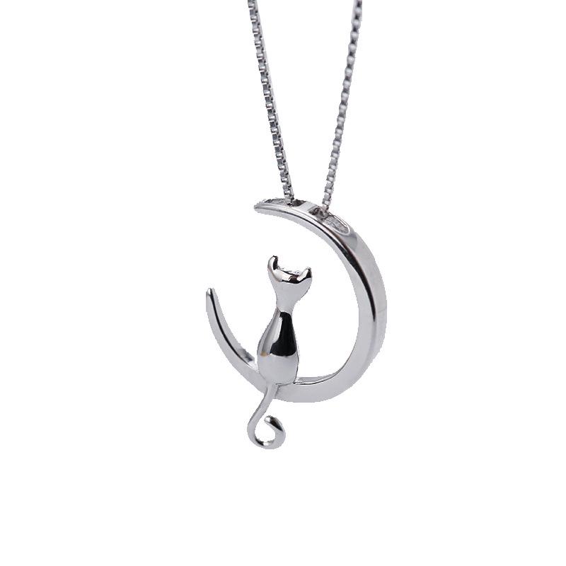 Koreanische Süßer Mond Kätzchen Halskette: Niedlicher Katzenanhänger für Damen, Schlichter und einzigartiger Studentenschmuck