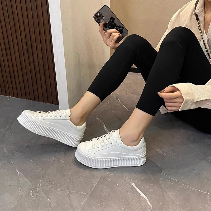 Leder Muffin Dicksohlige Kleine Weiße Schuhe Damen Neue Erhöhende Atmungsaktive Schnürschuhe Studenten Board Schuhe Lässige Keks Schuhe