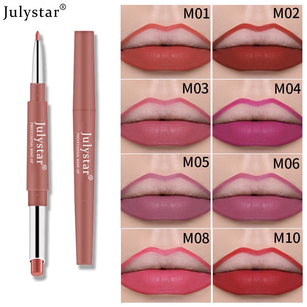 Europäischer und amerikanischer doppelseitiger, langanhaltender Lippenstift & Lipliner - Pink, einziehbar, nicht verblassend, nicht am Glas haftend.