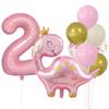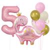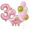 Cute Crown Pink Dinosaur Aluminum Film Balloon Set 32 Inch Pink Digital Girl First Birthday Party Decoration
