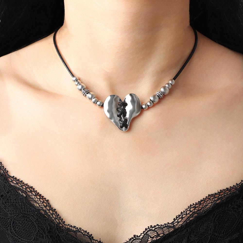 JMXD Bohemian Heart Pendant Wax Cord Necklace Vintage Retro Artistic Fashion Accessory Unique Design for Women
