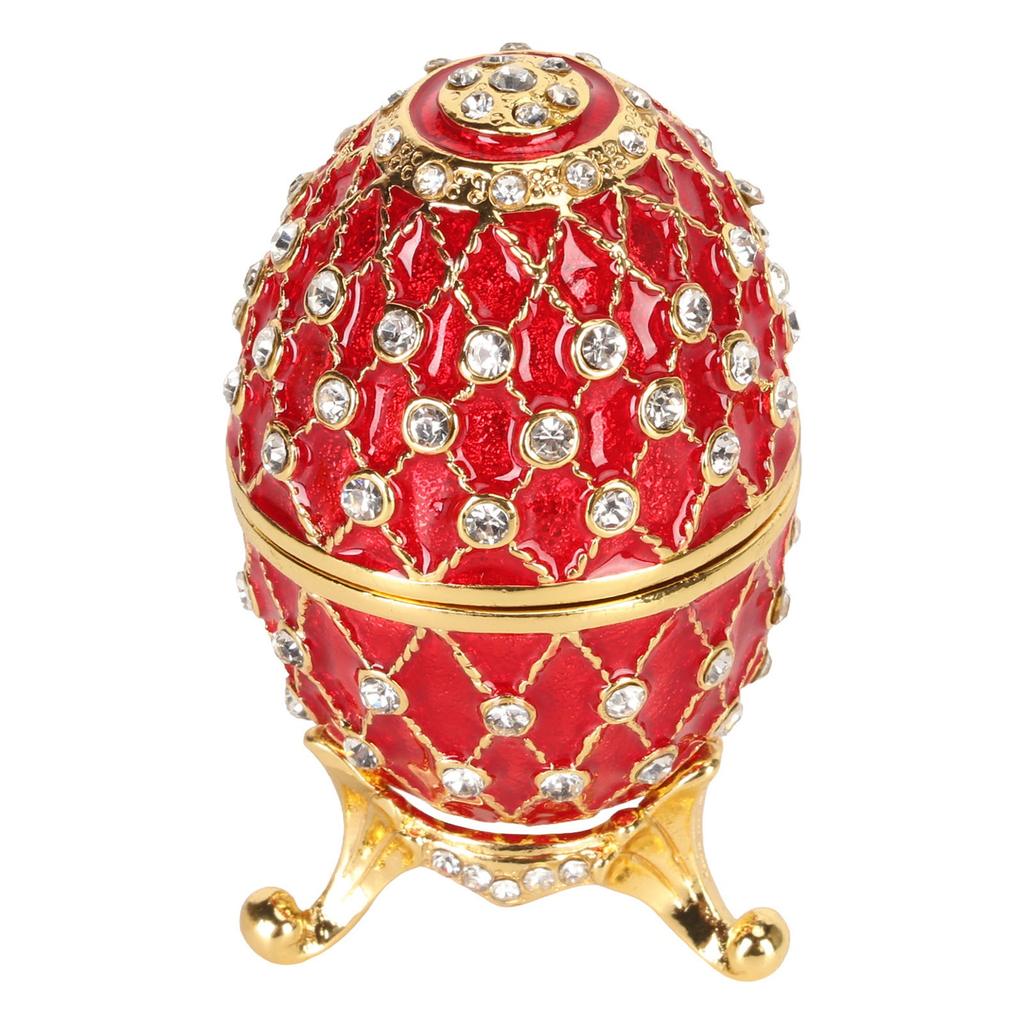 Egg Trinket Box Zinc Alloy Sparkling Rhinestone Exquisite Elegant Metal Jewelry Box for Family Office Storage Red