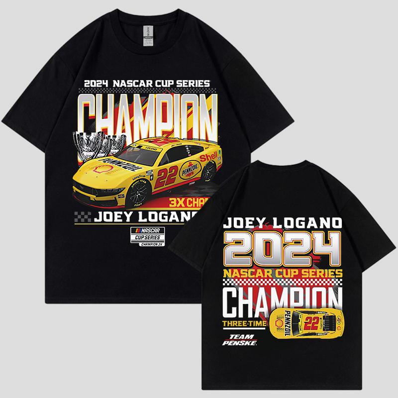 Joey Logano 2024 NASCAR Cup Series Champion Herren Baumwolle Bedrucktes T-Shirt Übergroß Locker Lässig Street Damen Shirt