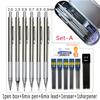 Metal Mechanical Pencil Set With Pen Box Lead Eraser Pencil Sharpener Set 0.3 0.5 0.7 0.9 1.3 2.0mm Art Sketch Automatic Pencil