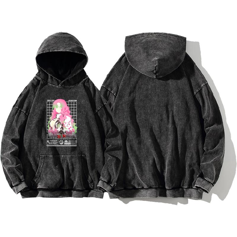 Heißer Anime Demon Slayer Kanroji Mitsuri Bedruckter Kapuzenpullover Herren Damen Vintage Hoodies Gewaschene Baumwolle Sweatshirt Harajuku Streetwear