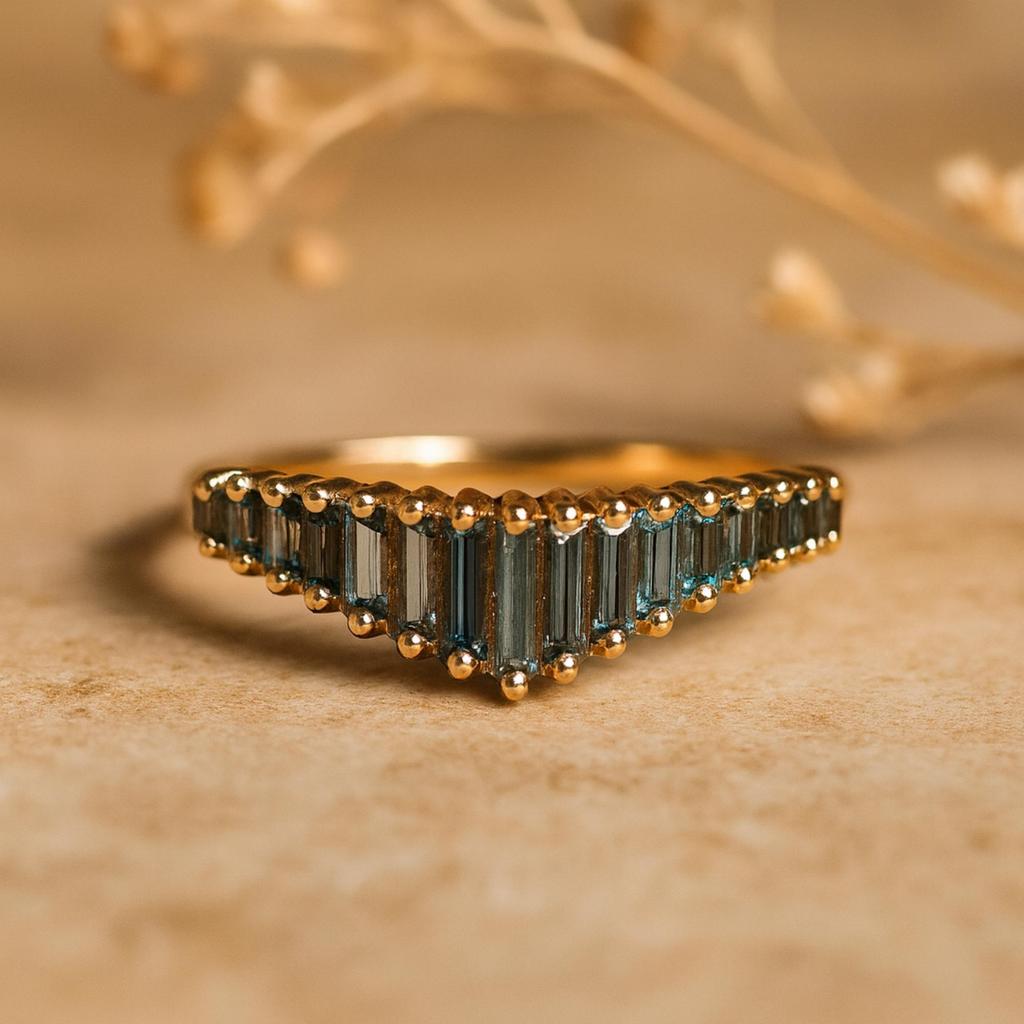 Chevron Aquamarine Baguette Ring – Blue Gemstone Band in Yellow Gold plating - 925 Sterling SIlver Jewelry Gift
