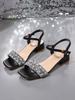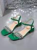 Mode Kristall Damen Mittelhohe Absätze Sandalen Elegant Absatzschuhe 2025 Sommer Mode Klobige Pumps Eckige Zehenpartie Flach Schnalle Schuhe für Frauen