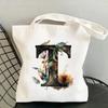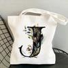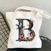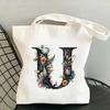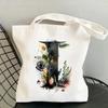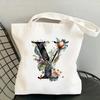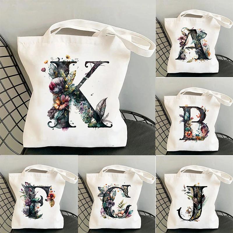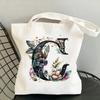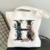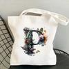 26 Black Alphabet Flower Tote Bags For Women Large Capacity Canvas Casual New Shopping Printed Reusable Handbag Eco Bag Large