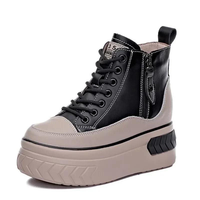Mode 2025 High Top Damen Schuhe Echtes Leder 8cm Plateau Stiefel Keil Versteckter Absatz Reißverschluss Frühling Herbst Warmes Fell Winterschuhe Sneaker