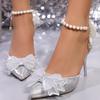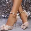 Mode Weeding Bling Kristall Pumps Absätze Damen Sommer Luxus Perlen Schnalle Riemen Frau Pumps Schuhe Spitze Zehe Schleife Hohe Absätze Damen