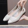 Spitzer Zeh Loch Loch Leder Mittelabsatz Damen Sandalen Frühling und Sommer neu vielseitig kleine Größe weiches Leder dicker Absatz hohle Lederschuhe