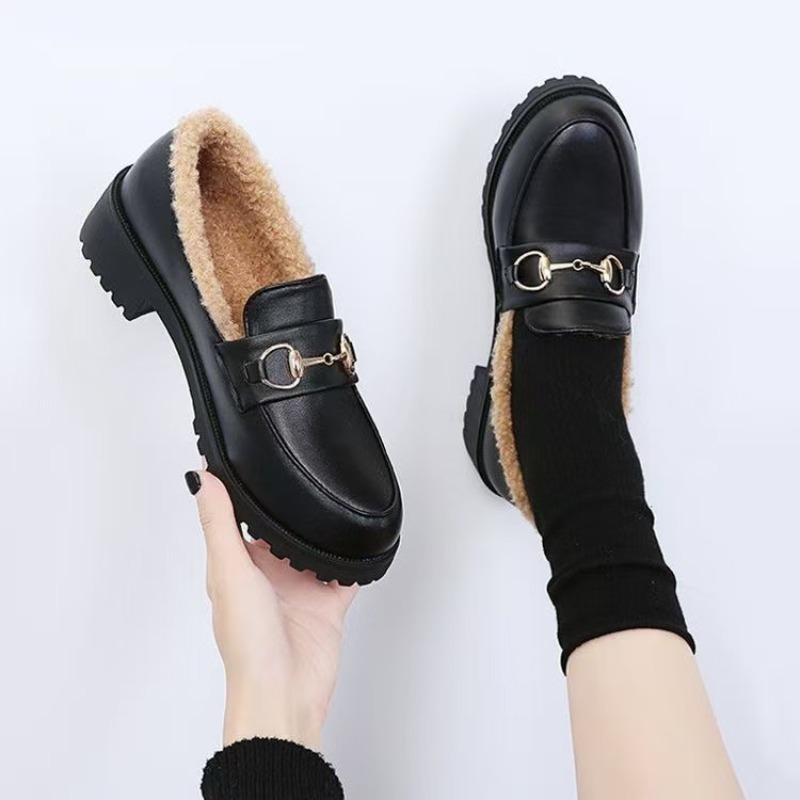 Rundkopf flauschige kleine Lederschuhe für Damen Winter neue modische flachbodige Plüsch warme Liebe kleine Lederschuhe