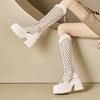 Mode 2025 Frühling und Sommer Neue Leder Perforierte Kalte Stiefel Plateau Kleine Höhe Atmungsaktive Sommerstiefel Oberschenkelhohe Stiefel