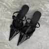 Mode Baotou Schuhe Damen Frühling und Sommer Neu Spitzzehen Flachmund Sexy Schleife Kreuzschnalle Stilettoabsatz Hinten Offene Sandalen