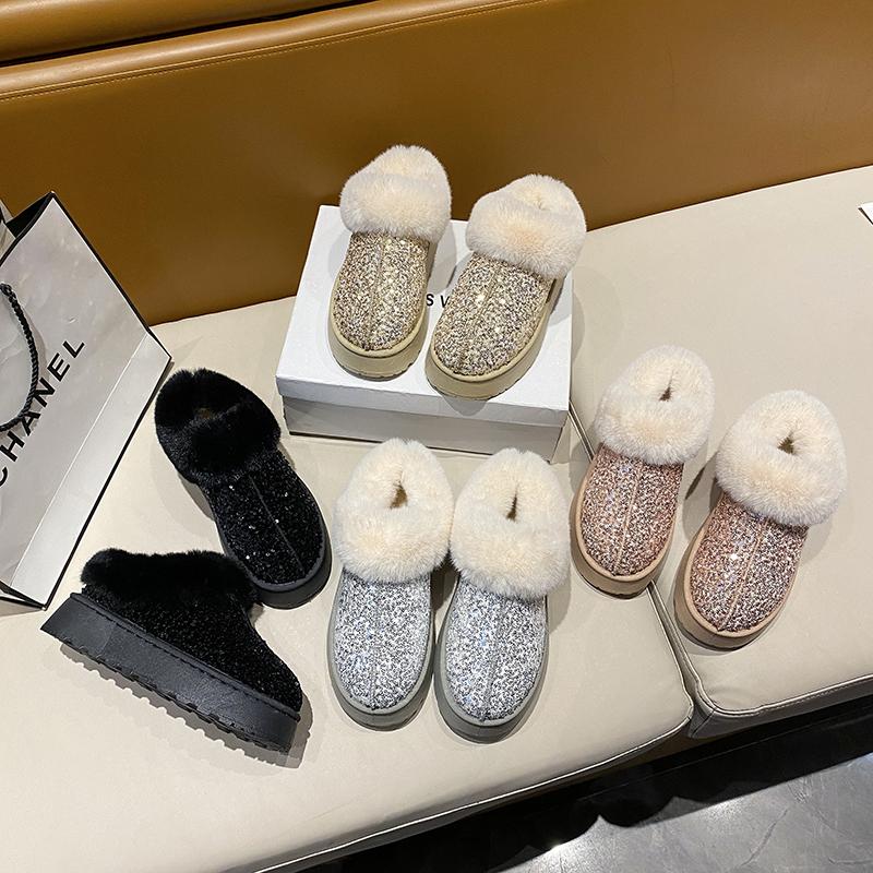Damenmode Dicke Sohle Schneestiefel Winter Warm Glitzer Upgrade-Version Wintermode Paillettendesign Gummimaterial Bequem
