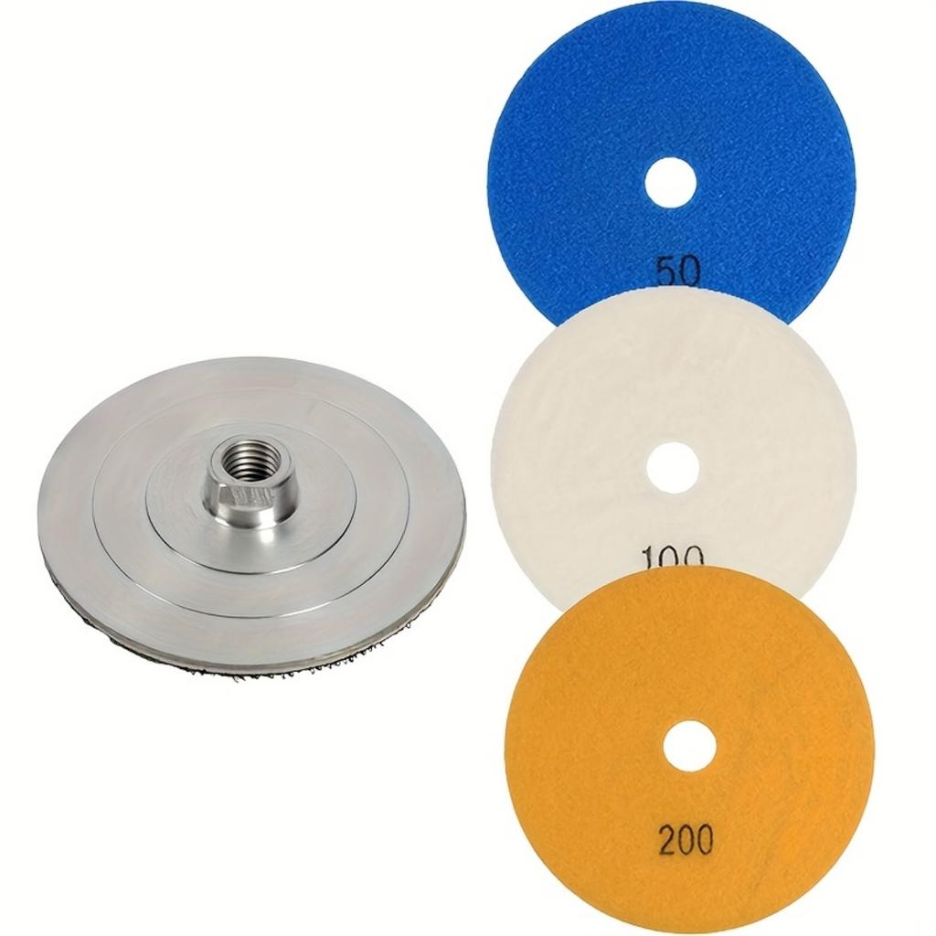 3pcs 100mm/4inch Diamond Polishing Pads with M14 Aluminum Alloy Backer Wet/Dry Polish Pad Kit for Granite Marble Concrete Stone