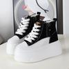 Mode 12CM Echtes Leder PU Spleiß Frühling Herbst Stiefeletten Damen Plateau Gepolsterter Keil Hoch Marke Klobige Sneakers Modeschuhe