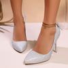 Mode Temperament Stiletto Einzelne Schuhe Damen Spitzschuh Flacher Ausschnitt Paillettenbesatz Schleife hinten Rutschfeste Stiletto Schuhe