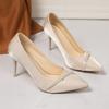 Mode Französische Spitze Flacher Ausschnitt Hohe Absätze Damen Frühling und Herbst Temperament Perlenbesetzt Schlanker Absatz Einzelne Schuhe