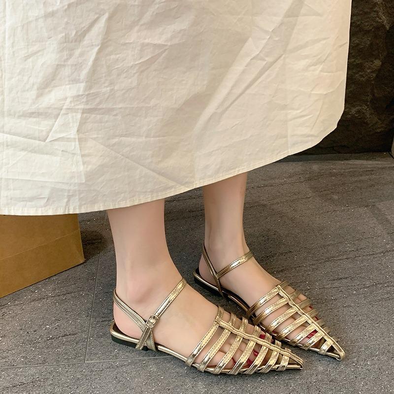 Fashion Baotou Sandals Women's Fashion Pointed Toe Shallow Mouth Hollow Thin Strap Combination Soft Sole Anti-slip Wear-resistant Flats