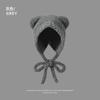 Autumn and winter cute bear female plush headgear warm face small knitted wool hat big head circumference ear protection hat