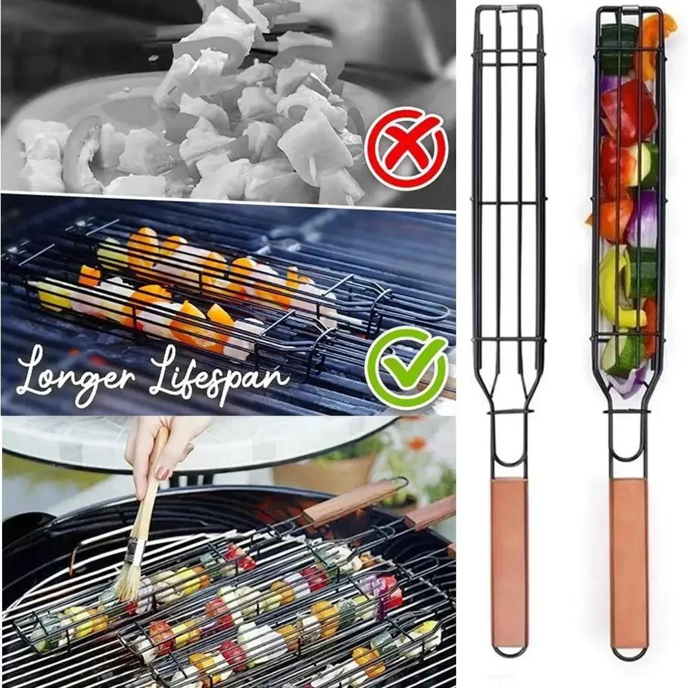 Tragbarer Kebob-Grillkorb aus Edelstahl mit Antihaftbeschichtung, Grillkorb, Werkzeug aus Netzgewebe, Küchenutensilien, Küchenzubehör