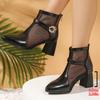 Mode Sexy Schwarzes Mesh Sommer Stiefeletten für Damen Spitzschuh Dicke Hohe Absätze Schuhe Frau Mode Kristall Dekor Atmungsaktive Coole Stiefel