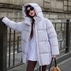 Modischer Daunenbaumwoll-Midilängen-Baumwollmantel für Damen mit Kapuzenrock und verdicktem Baumwollmantel