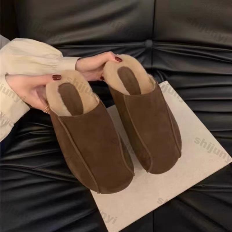 Mode Damen Schuhe mit dicker Sohle Geschlossene Zehenpartie Runde Zehenpartie Wildleder Halbschuhe Damen Herbst Winter Neu Flache Slingback Slipper Baumwollpantoffeln