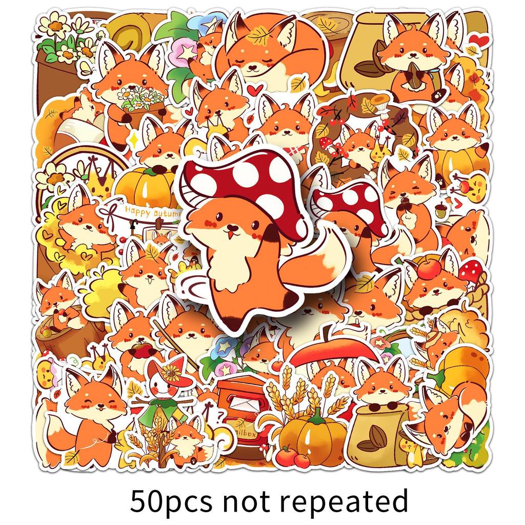 50 Little Fox Autumn Cartoon Stickers Cute Hand-painted Animal Decorative Mobile Phone Case Guka Stickers