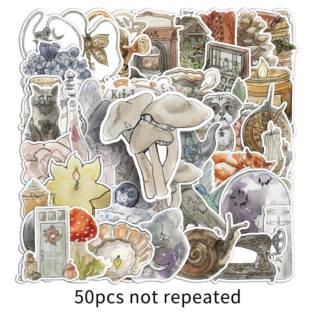 50 Aquarell-Stil Graffiti-Aufkleber Personalisierte Kleine Frische Handgemalte Dekorative Handyhülle Wasserbecher Koffer Aufkleber