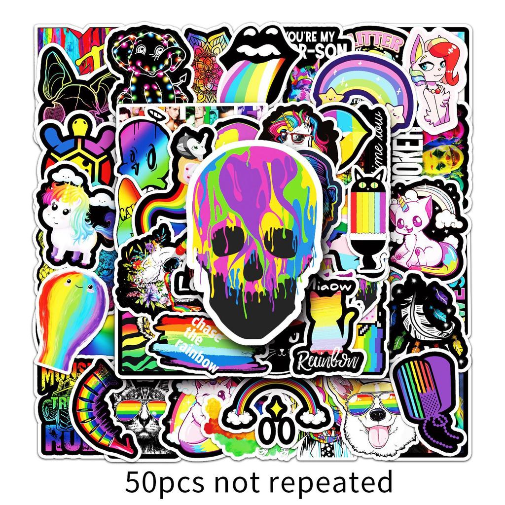 50 Rainbow Colored Personalized DIY Graffiti Stickers Scooter Refrigerator Helmet Waterproof Cup Waterproof Decorative Stickers