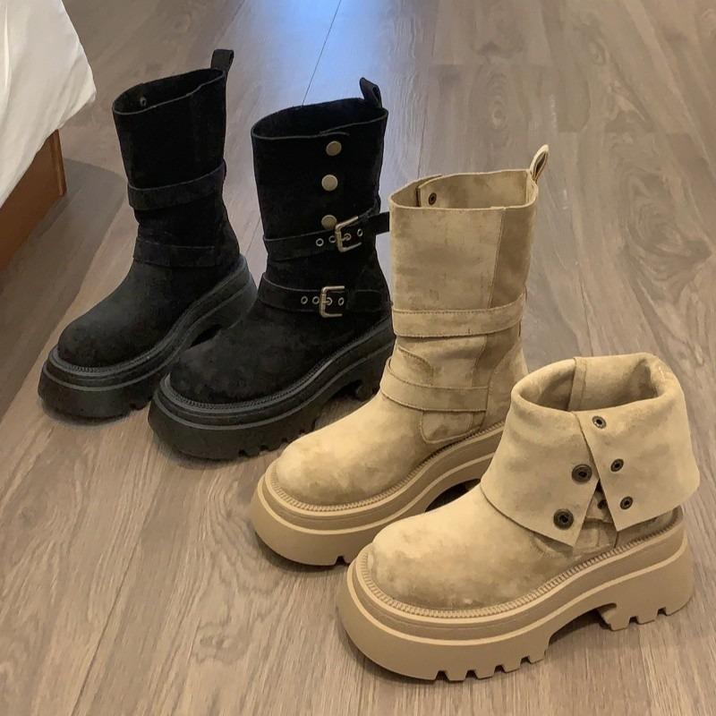 Retro Muffin Martin Stiefel mit dicker Sohle zeigen schlanke Beine für Damen neue modische schlanke und erhöhte Einzelstiefel