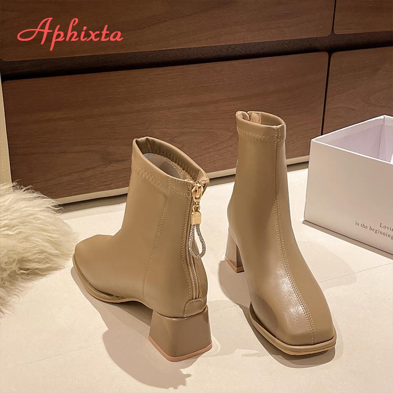 Fashion Aphixta Moderne Stiefeletten Kristall Reißverschluss hinten Lackleder Damen 4,5 cm Hohe Stiefel Quadratische Zehenpartie Prägnante Schuhe Elegante Damenschuhe