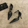 Fashion 2025 Summer New Pointed-Toe Design High-End High Heels Slim Heels J Rhinestone Round Buckle Niche One-Shoulder Sandals For Women