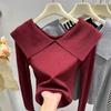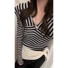 Modischer Revers-Streifenpullover, Ein neues Design für Damen Herbst und Winter, mit einem jugendlichen und stilvollen Baselayer-Oberteil