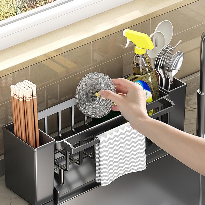 Spülbecken Abtropfgestell Schwammhalter Armaturen Aufbewahrung Seifenablage Handtuchhalter Regal Organizer Küchenzubehör