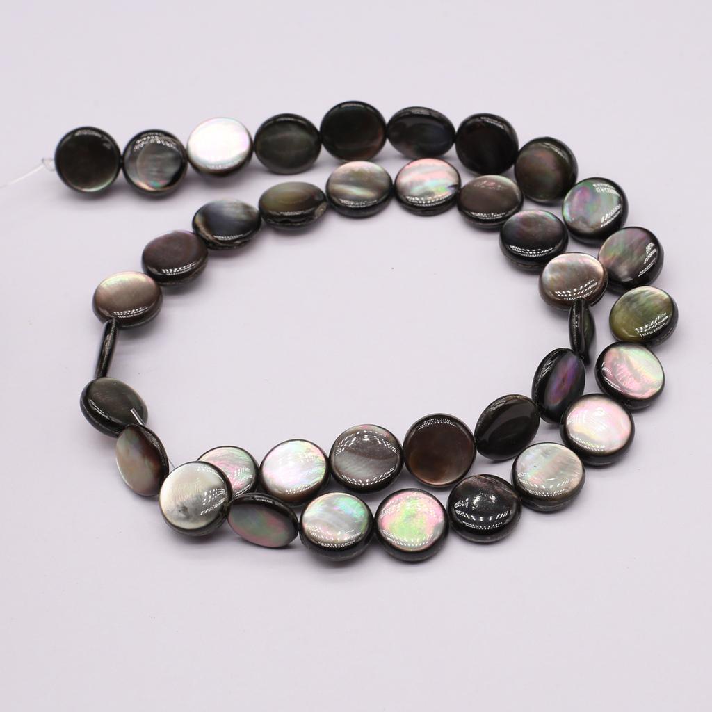1 Strang, Schwarze Naturmuschelperlen, Dunkler Stil Handgefertigte Runde Lose Distanzperlen, 10×10mm, zur Schmuckherstellung DIY Halsketten, Armbänder Zubehör 38cm